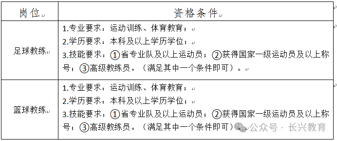 3.报考体育教练(足球、篮球)岗位,且以高水平运动员录取普通高校的人员(需提供相应证明材料),专业不限。