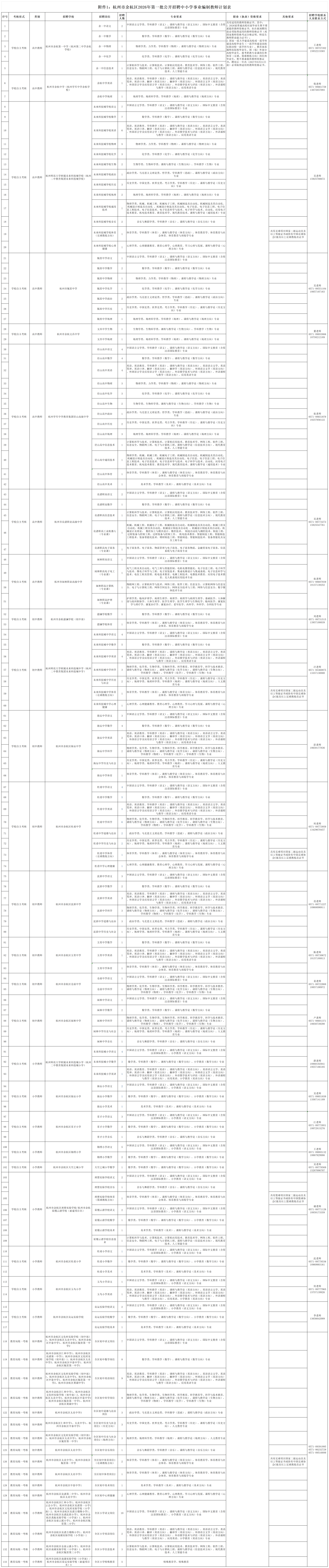 余杭区公开招聘2026年第一批中小学事业编制教师公告